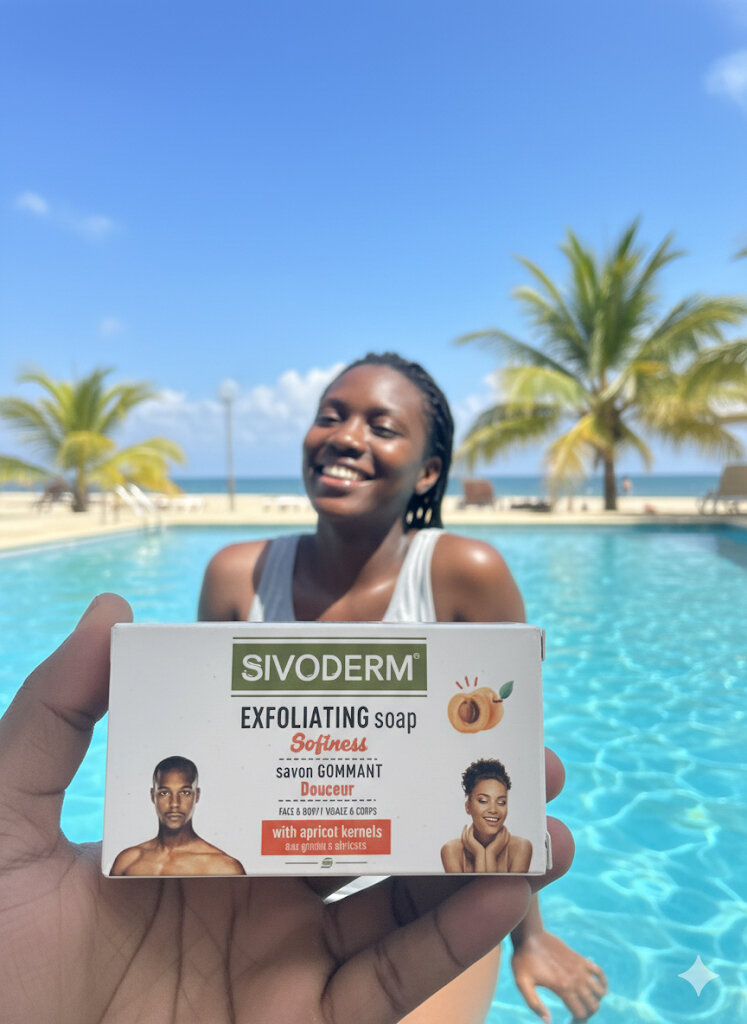 Découvrez le savon exfoliant SIVODERM à l'huile de noyaux d'abricot pour une peau douce et éclatante. Idéal pour éliminer les cellules mortes et redonner de l'éclat à votre teint. Parfait pour un usage quotidien sous le soleil des tropiques!