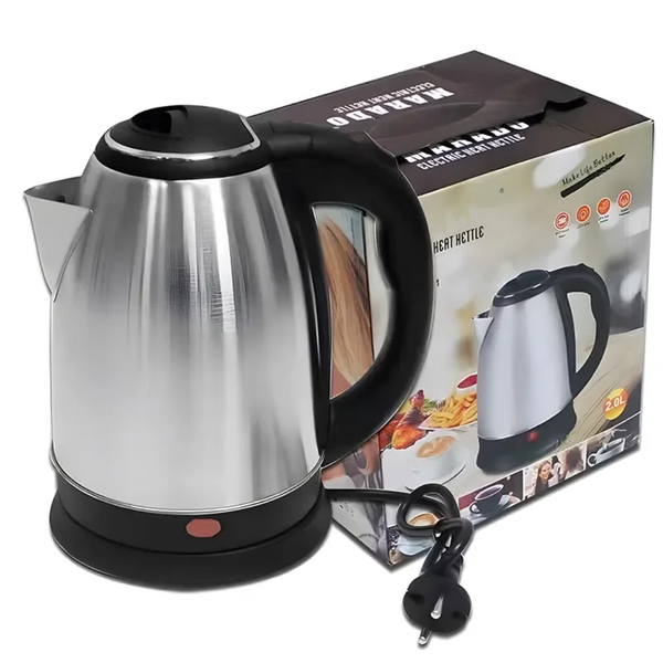 Bouilloire électrique très efficace et rapide avec ça capacité de 1,8LPuissance =1500WArrêt automatique Protection contre le surchauffe Le corps en acier inoxydable de haute qualité Éléments chauffage caché en acier Base de rotation avec lampe indicateur 360 degrés