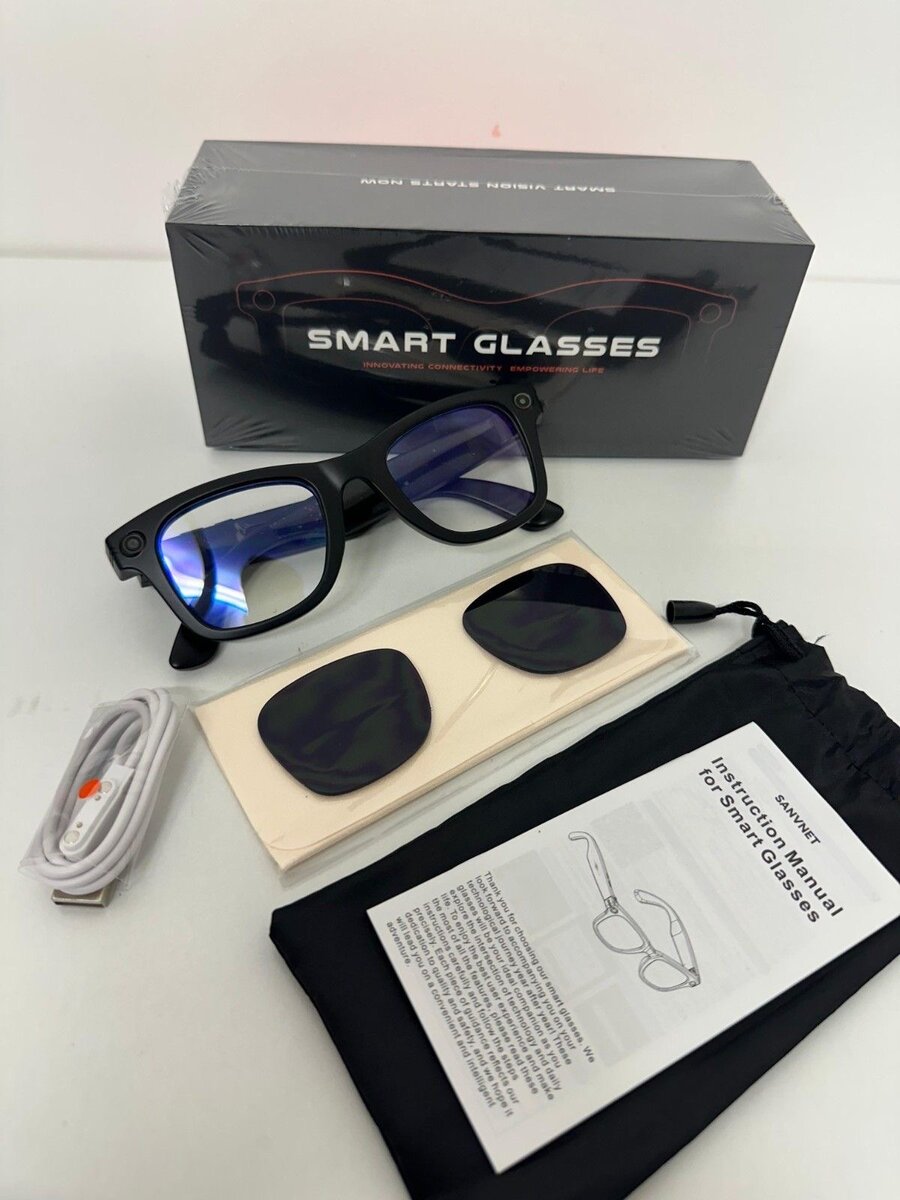 Découvrez les Smart Glasses, des lunettes de soleil intelligentes parfaites pour le sport et le quotidien. Livrées avec des verres interchangeables et un câble de chargement.