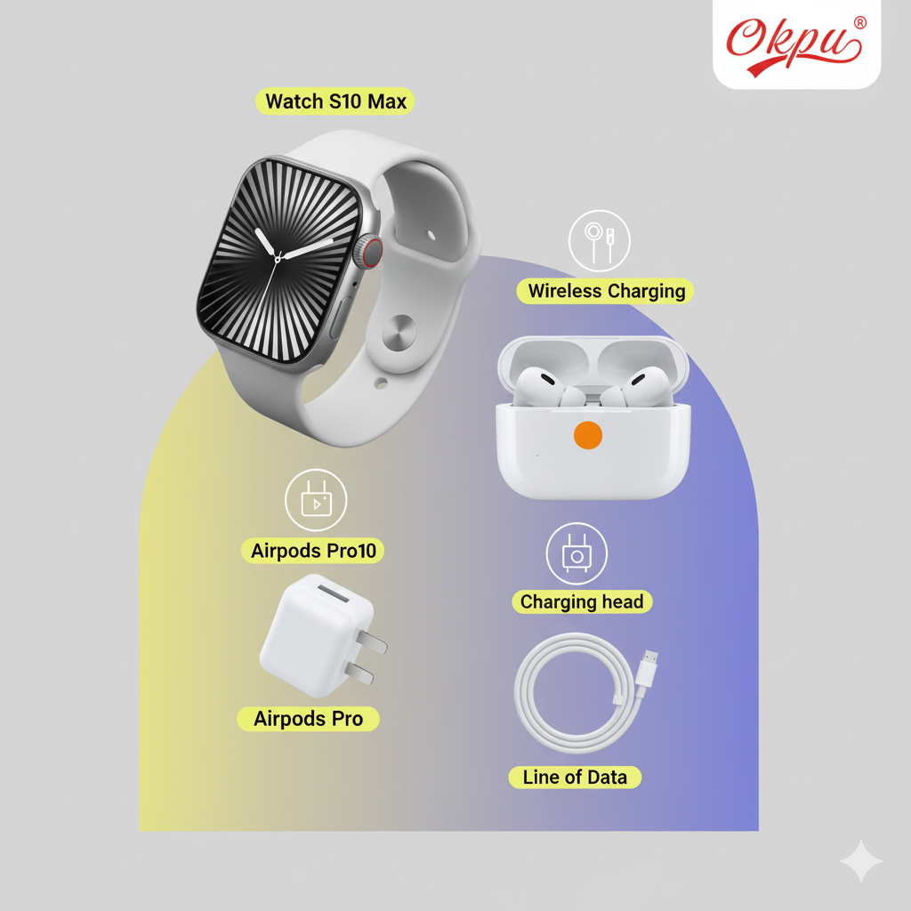 Découvrez le Smart Watch S10 Max avec Airpods Pro10 - l'alliance parfaite pour votre style de vie connecté. Profitez de la charge sans fil pratique et d'une expérience auditive exceptionnelle avec les Airpods Pro. Idéal pour le travail et les loisirs, ce kit vous accompagnera au quotidien avec élégance et efficacité.