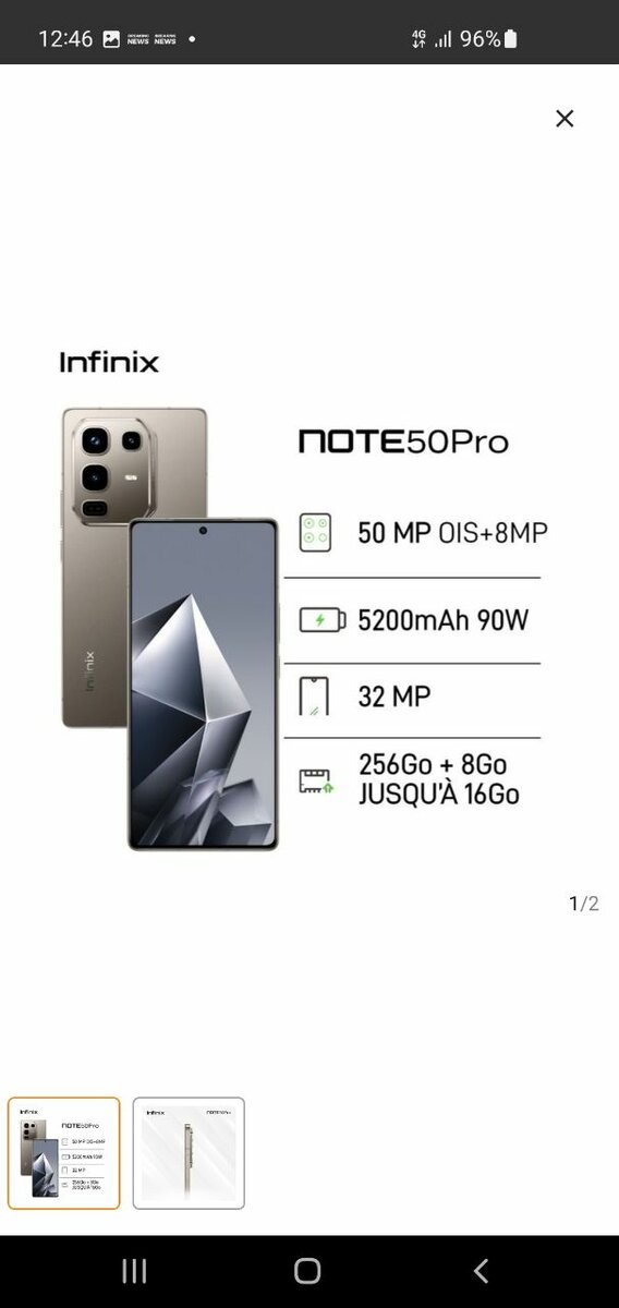 Découvrez le puissant Infinix Note 50 Pro avec sa caméra 50 MP, batterie 5200mAh et 256Go de stockage. Idéal pour capturer vos moments et rester connecté toute la journée.