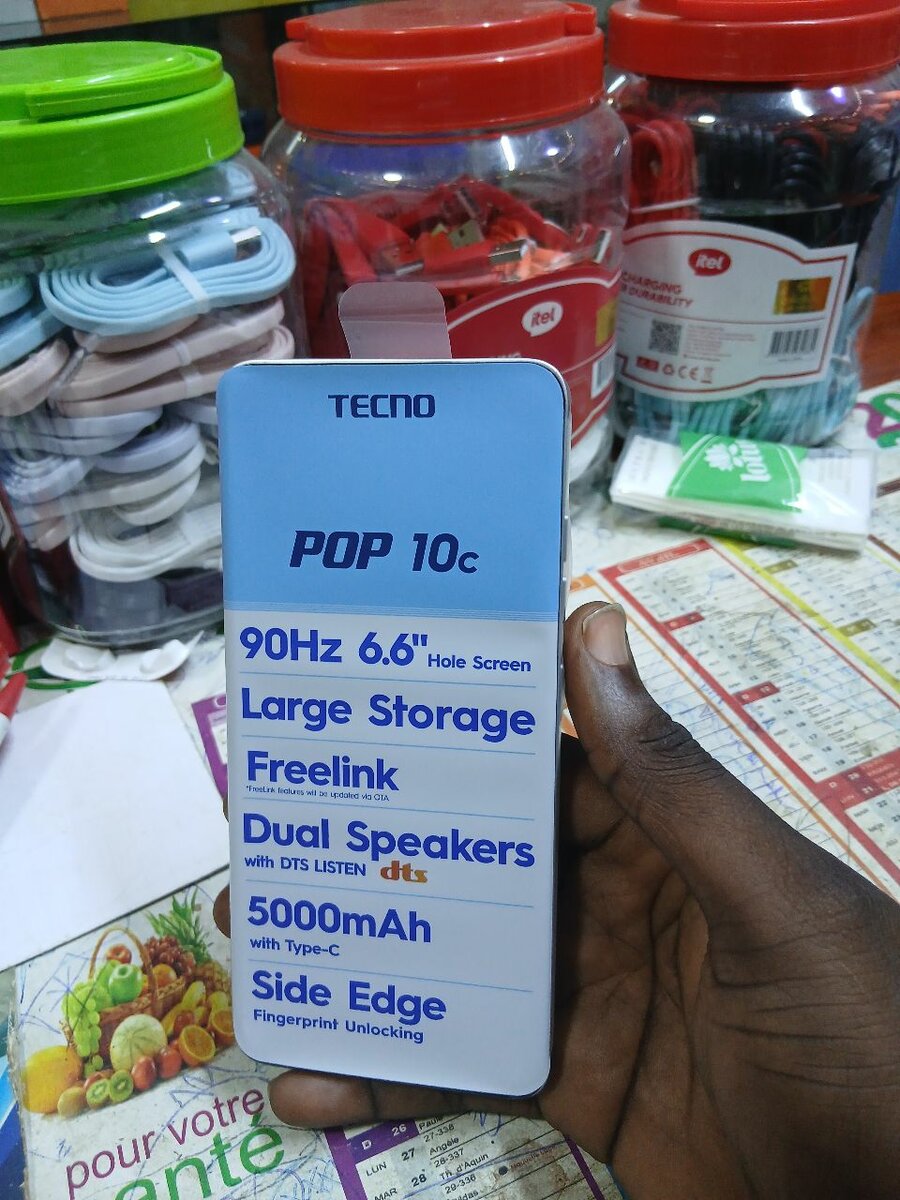 Découvrez le TECNO POP 10c avec écran 6.6" 90Hz, grande capacité de stockage et double haut-parleurs avec DTS. Bénéficiez d'une batterie puissante de 5000mAh pour une utilisation prolongée. Idéal pour le multimédia et la connectivité grâce au port USB Type-C. Design élégant avec lecteur d'empreintes latéral pour un accès rapide et sécurisé. Parfait pour un usage quotidien, du travail au divertissement.