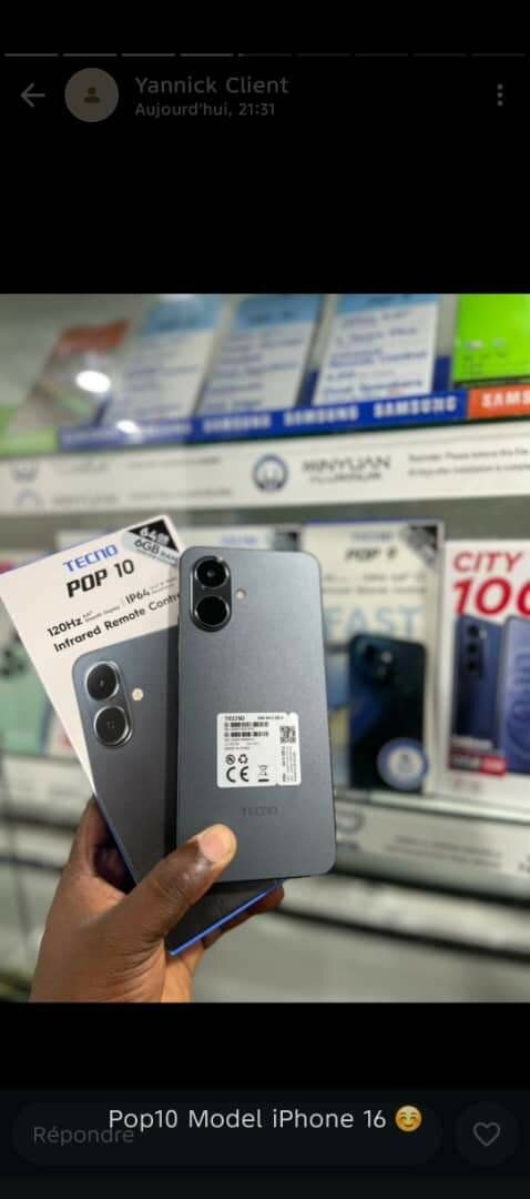 Découvrez le smartphone Tecno Pop10 avec double caméra puissante, écran haute résolution et design élégant. Idéal pour capturer chaque moment et rester connecté.