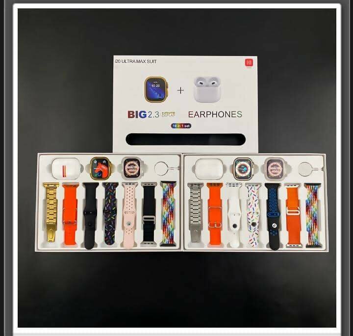 120 Ultra Smartwatch is designed with lots of intriguing functions with amazing 2.3 screen size. What's in the box? *Smartwatch *Smartwatch Cover *USB Wireless Charger *7 Multicoloured straps *Airpod Pro etc.