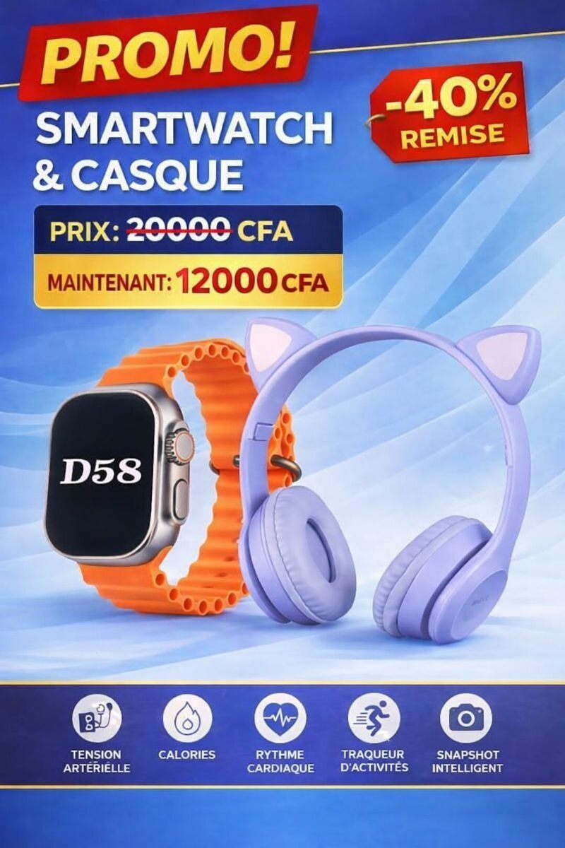 Discover the perfect combo for tech enthusiasts! This bundle includes a sophisticated smartwatch with activity tracking, heart rate monitoring, and more. Paired with stylish cat ear headphones, ideal for music lovers. Perfect for workouts, casual wear, or playful gaming sessions.