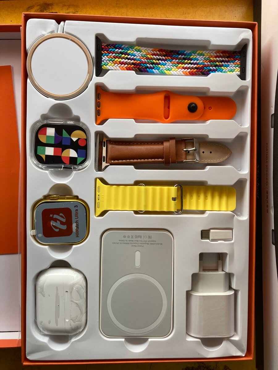 Smartwatch that includes Powerbank, typeC Charger, wireless Charger and 4 straps