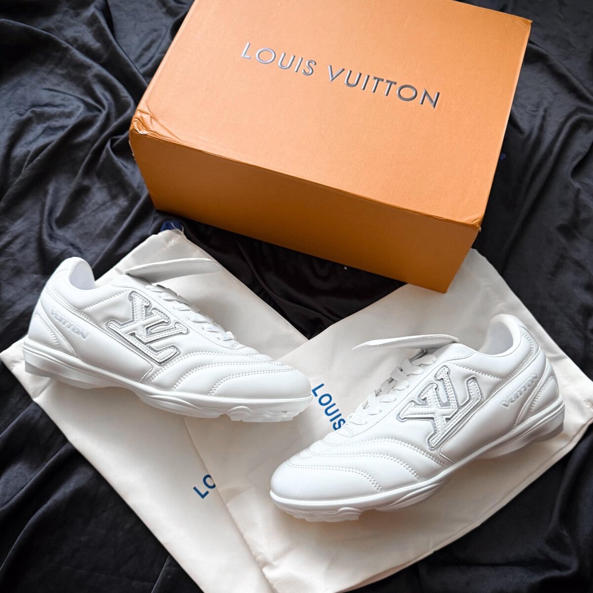 : Elle se distingue par sa silhouette épurée avec des LV Initiales dynamiques sur le côté et des lignes inclinées rappelant les chaussures de football.