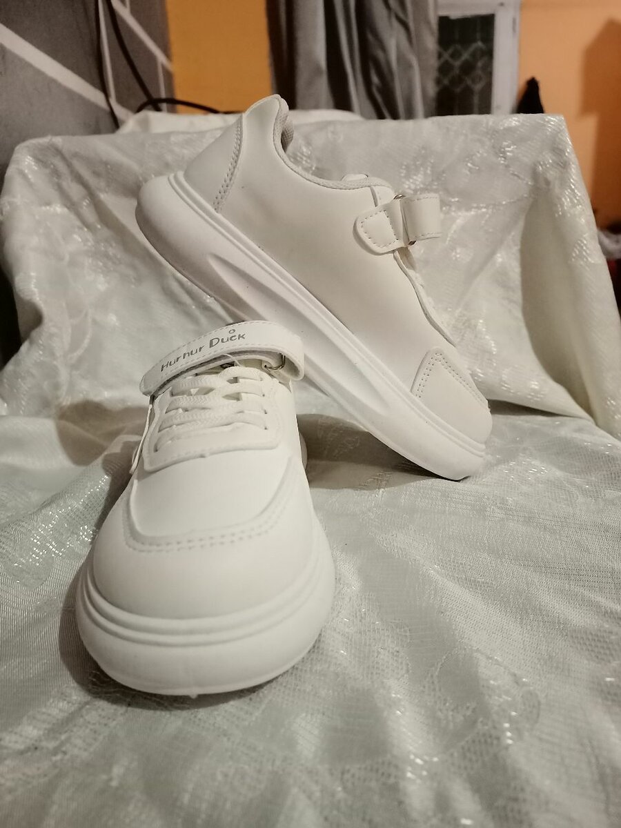 Découvrez ces sneakers blancs élégants pour enfants. Confortables et stylés, ils sont parfaits pour toutes les occasions. Fabriqués avec des matériaux de qualité, ils assurent un bon maintien du pied grâce à leur fermeture pratique. Idéals pour l'école, le sport ou les sorties en famille. Un choix parfait pour un look décontracté et tendance.