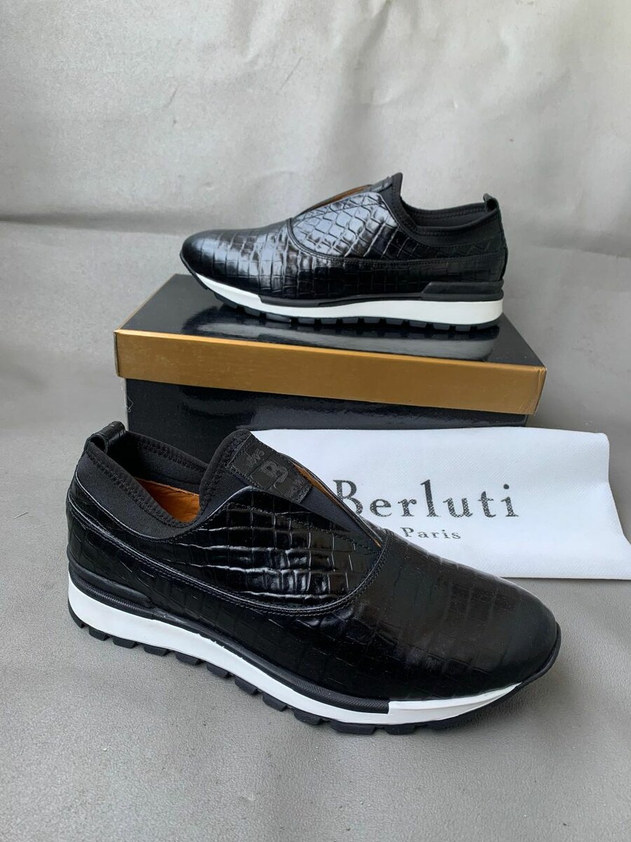 Découvrez le confort et l'élégance intemporelle des sneakers Berluti en cuir de première qualité. Parfaites pour un look chic au quotidien, elles offrent durabilité et style inégalé. Idéales pour les hommes modernes qui apprécient le luxe.