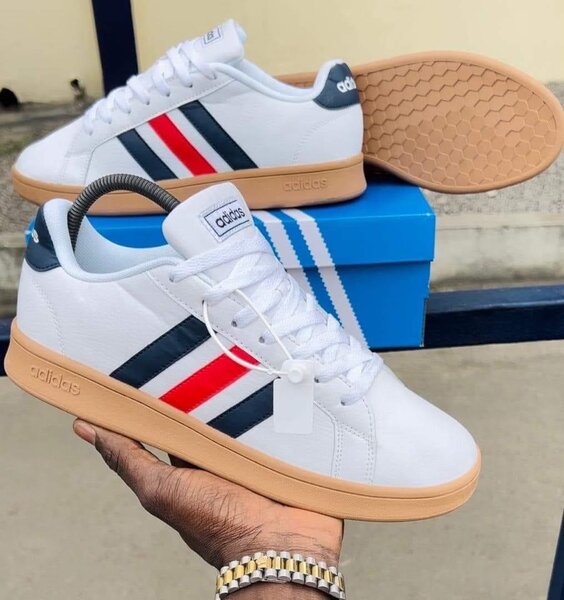 Découvrez les sneakers en cuir blanc Adidas, parfaits pour un look sportif et tendance. Dotés de bandes rouges et bleues et d'un motif unique, ces sneakers allient style et confort. Idéal pour les sorties décontractées ou pour ajouter une touche moderne à votre tenue quotidienne. Offrez à vos pieds le confort exceptionnel et le style iconique d'Adidas. Faites-vous remarquer avec chaque pas!