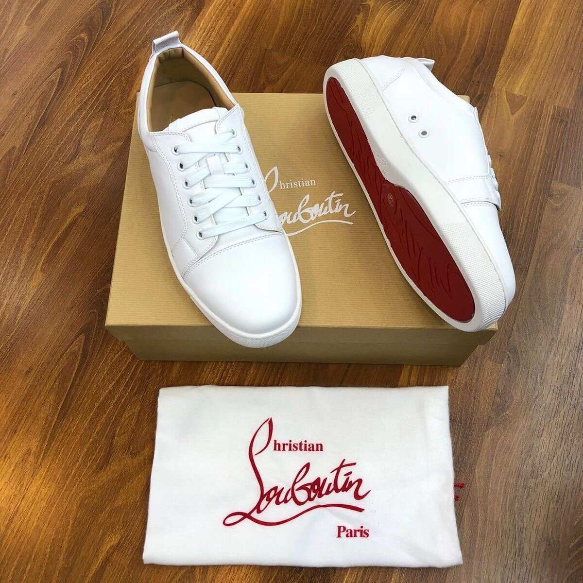 Découvrez l'élégance moderne avec ces sneakers en cuir Christian Louboutin, parfaites pour les amateurs de mode. Conçues avec une semelle rouge emblématique, ces chaussures allient style et confort, idéales pour un look chic et décontracté en toute occasion.