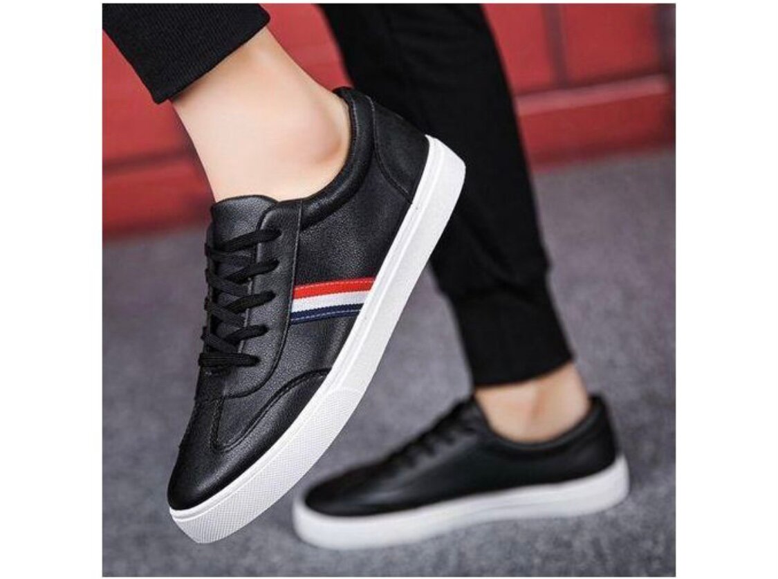 Découvrez ces sneakers en cuir noir, alliant style et confort. Parfaites pour un look décontracté, elles s'adaptent facilement à toutes vos tenues. Dotées de semelles antidérapantes et d'un design moderne avec bandes colorées, ces chaussures sont idéales pour les sorties quotidiennes et les aventures urbaines.