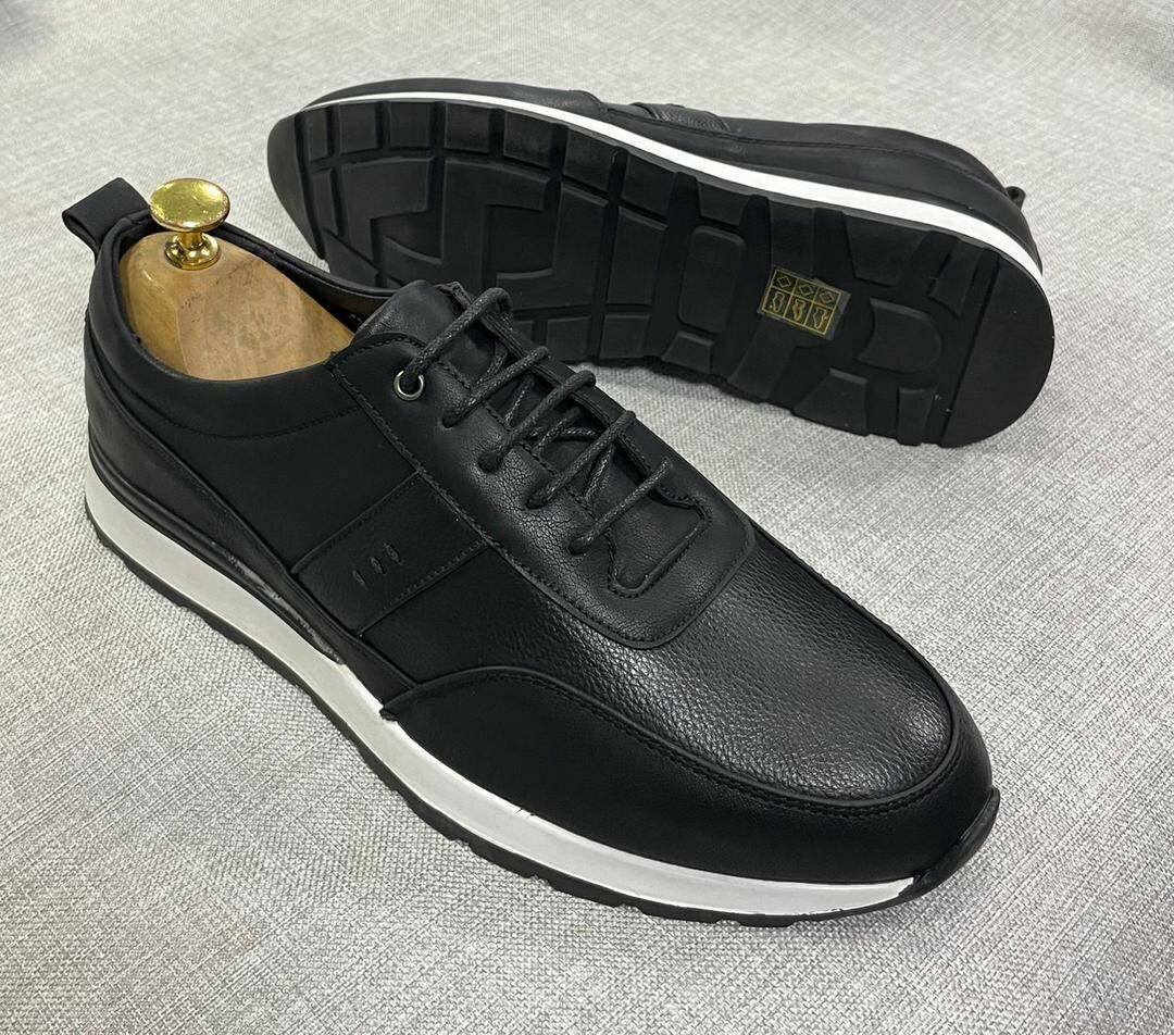 Découvrez l'élégance et le confort de nos sneakers en cuir noir. Parfaites pour compléter une tenue décontractée ou ajouter une touche sophistiquée à votre style quotidien. Conçues avec des matériaux de haute qualité pour une durabilité exceptionnelle. Idéales pour les hommes à la recherche de style et de confort. Ne ratez pas cette opportunité d'ajouter un essentiel polyvalent à votre garde-robe.
