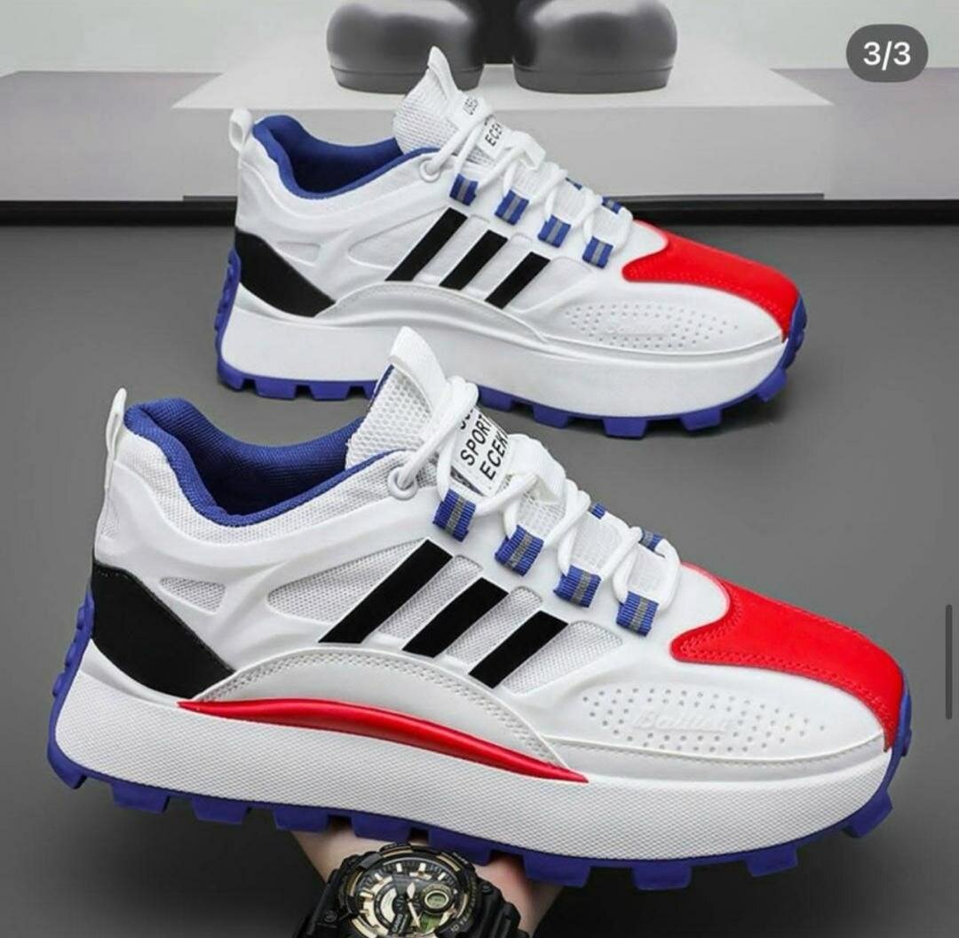 Découvrez ces sneakers tendance pour hommes, offrant un superbe design tricolore rouge, blanc et bleu. Confortables et stylées, elles sont idéales pour le sport ou un look décontracté. Semelles robustes pour une excellente adhérence. Parfaites pour la salle de sport ou les sorties urbaines. Ne manquez pas cette addition indispensable à votre collection de chaussures!