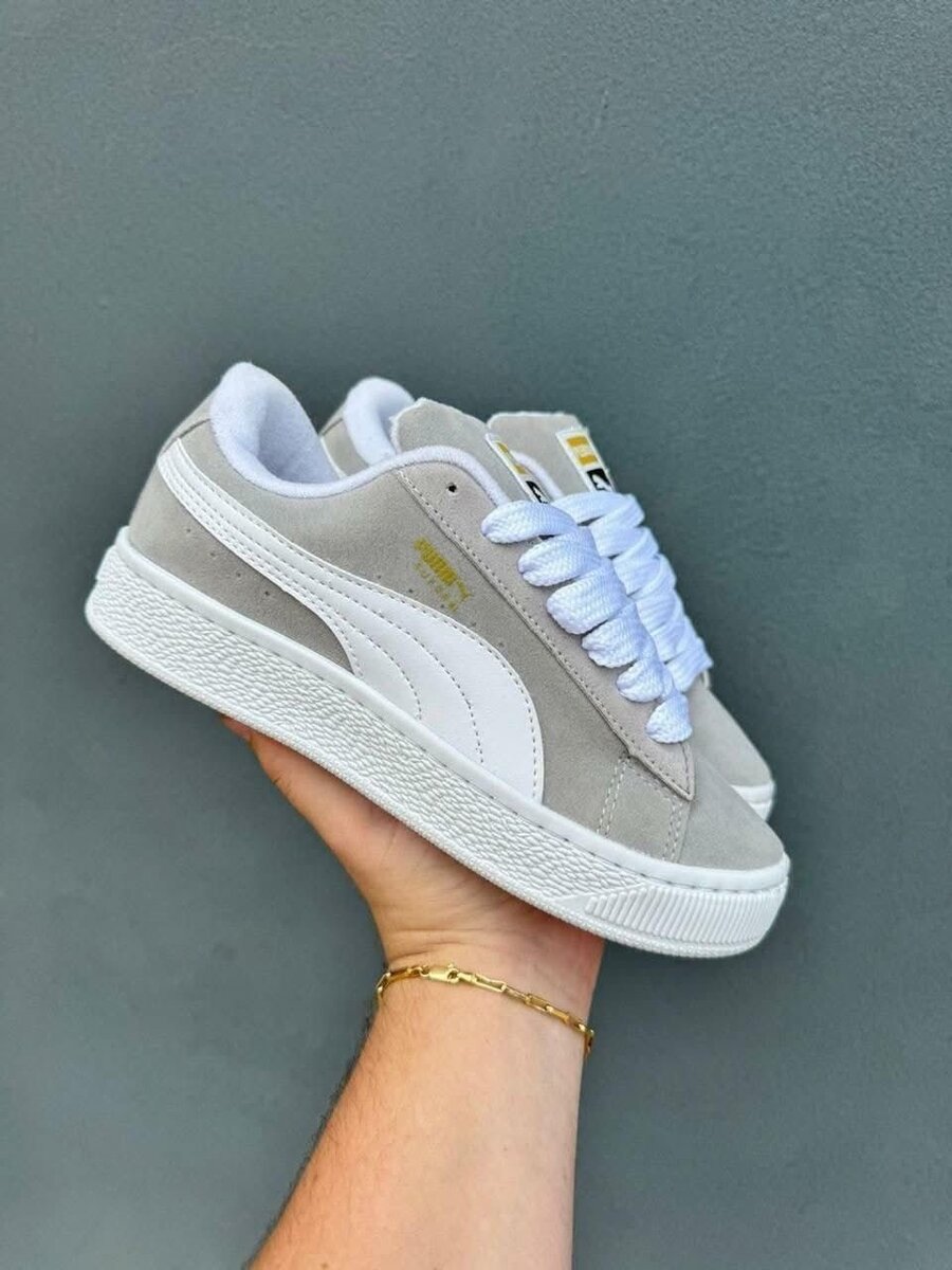 Découvrez les sneakers Puma en suède gris, alliant style moderne et confort exceptionnel. Parfaites pour une utilisation quotidienne, elles apportent une touche tendance à votre look. Conçues avec une semelle robuste et un design élégant, elles sont idéales pour toutes les occasions, que ce soit au travail, à l'école ou pour des sorties décontractées. Optez pour le luxe accessible avec Puma!