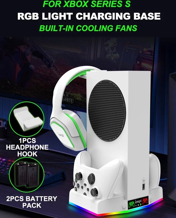 support ipega pour xbox séries s -double ventilation -deux batteries de manette xbox -un support casque -animation couleur réglable