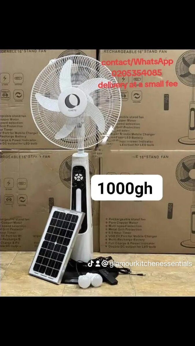 Rechargeable fan can work non stop for hours ,comes with a solar panel, one can use when there is no light, can charge your phone as well more and more