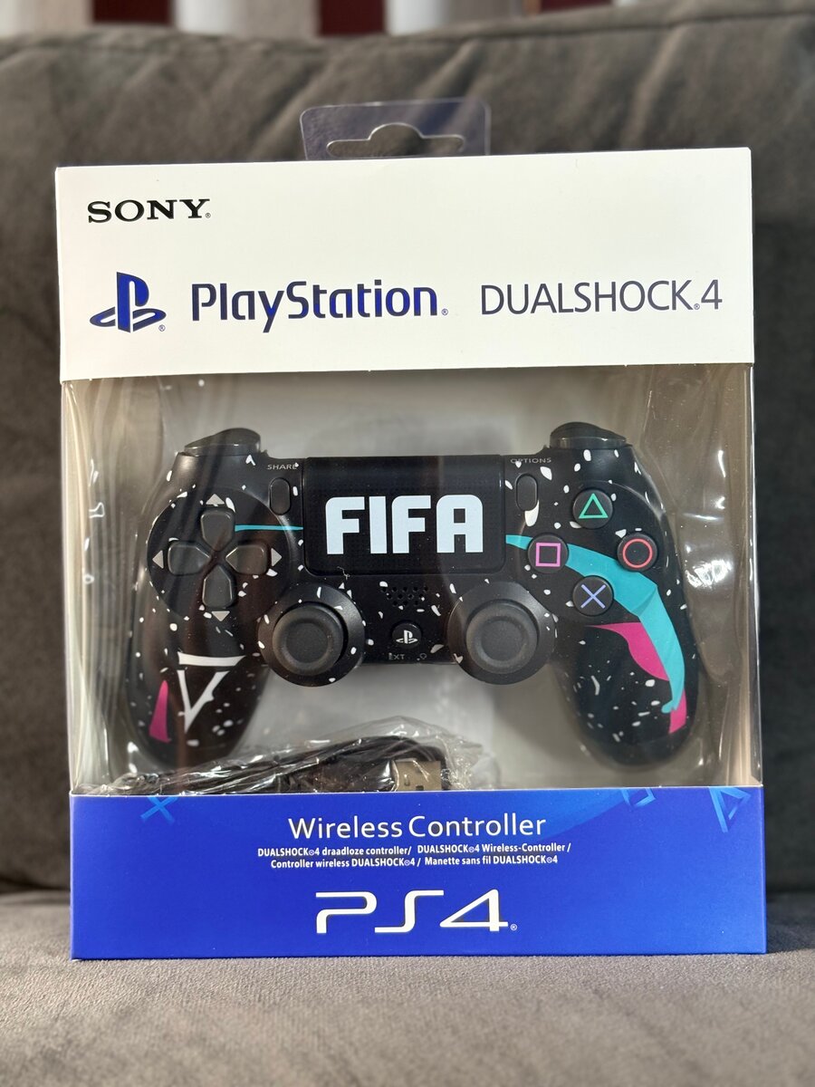 Manette sans fil Sony DualShock 4 édition FIFA pour PS4. Design unique et personnalisé pour les fans de football.