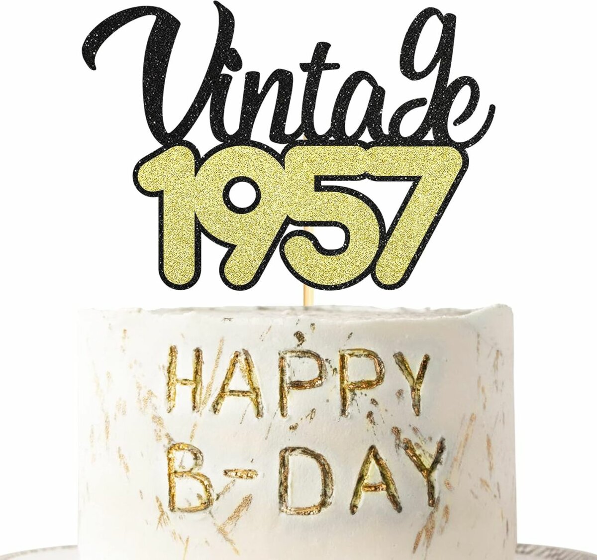 Sotpot 1972 Cake Topper Double Layers Black Gold Glitter