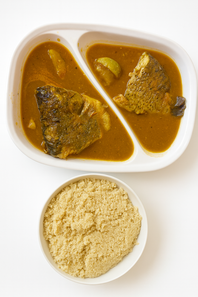 Savourez un délicieux plat de sauce riche en saveurs et morceaux de poisson. Parfait pour un repas authentique et réconfortant.