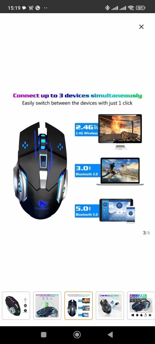 Souris gamer RGB sans fil 2.4G Rechargeable 5.2 silencieuse