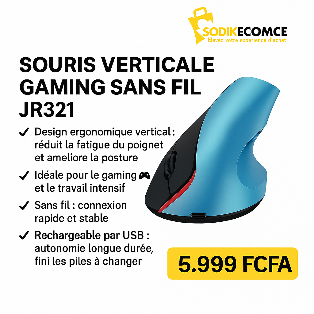 Améliorez votre expérience de gaming avec la souris verticale JR321. Son design ergonomique réduit la fatigue et améliore votre posture. Profitez d'une connexion sans fil stable et d'une autonomie longue durée grâce à sa recharge USB. Parfaite pour le gaming ou le travail intensif, elle vous offre confort et performance.