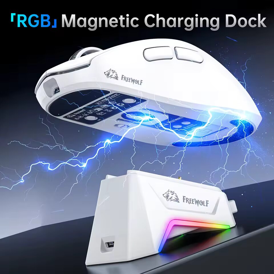 Découvrez la souris gaming ultime avec dock de charge magnétique RGB. Profitez de performances exceptionnelles grâce au capteur PAW3311 et une résolution incroyable de 24000 DPI. Idéale pour les gamers à la recherche de précision et rapidité. Son design ergonomique s'adapte parfaitement à votre main, tandis que le dock assure une charge rapide et pratique. Un choix parfait pour maximiser vos performances de jeu. À utiliser pour des sessions prolongées avec confort et style.