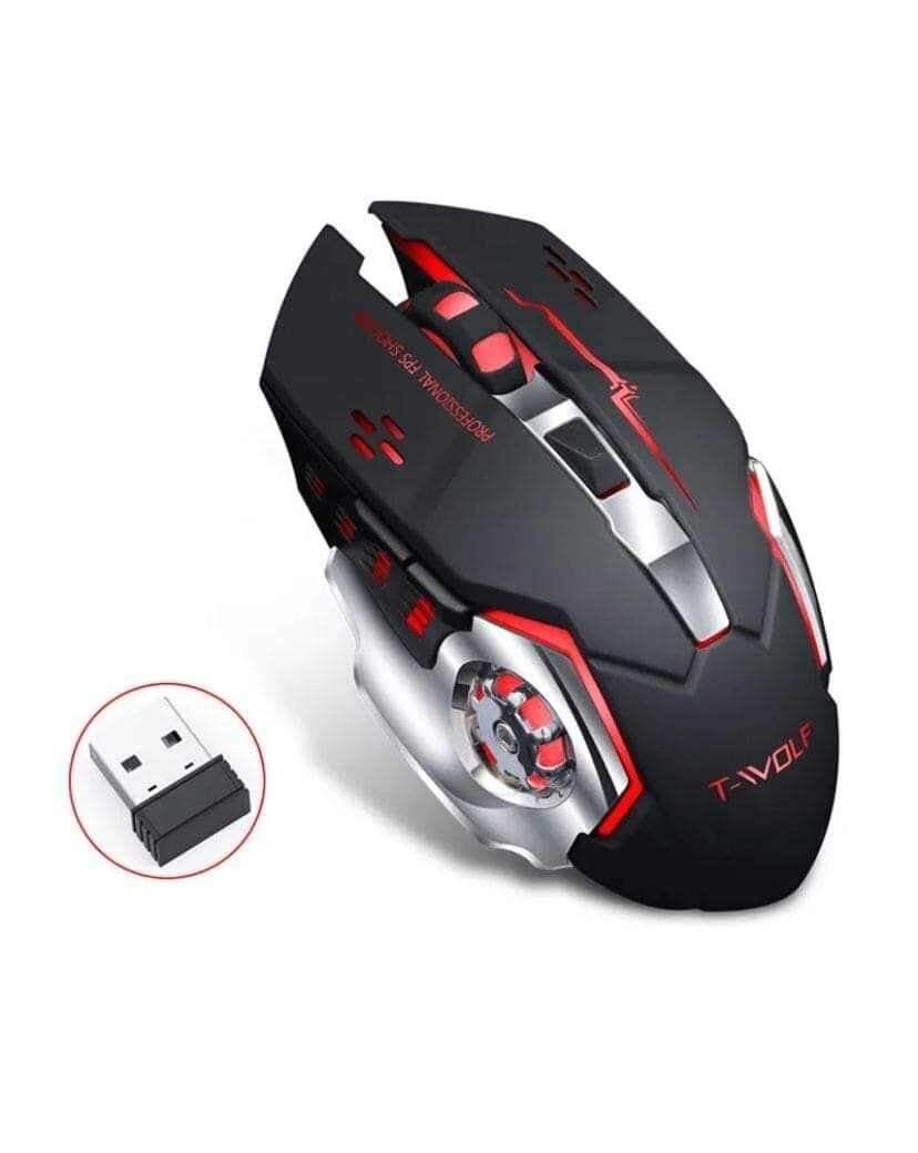 Optimisez votre jeu avec la souris gaming sans fil T-WOLF. Ergonomie avancée, design futuriste noir et rouge. Haute précision et connectivité facile. Parfait pour les gamers exigeants!