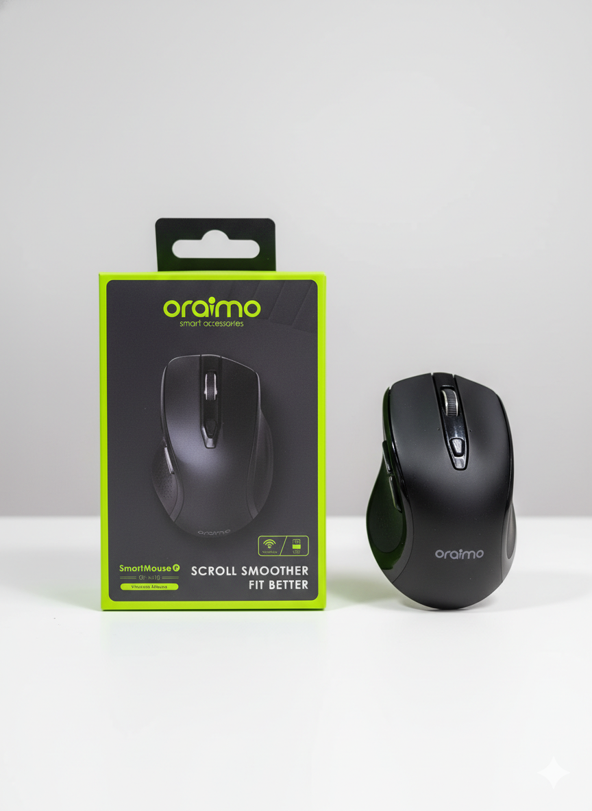 Découvrez la précision et le confort de la souris sans fil Oraimo, idéale pour le travail et le gaming. Design ergonomique pour une prise en main optimale. Compatibilité multi-plateforme.