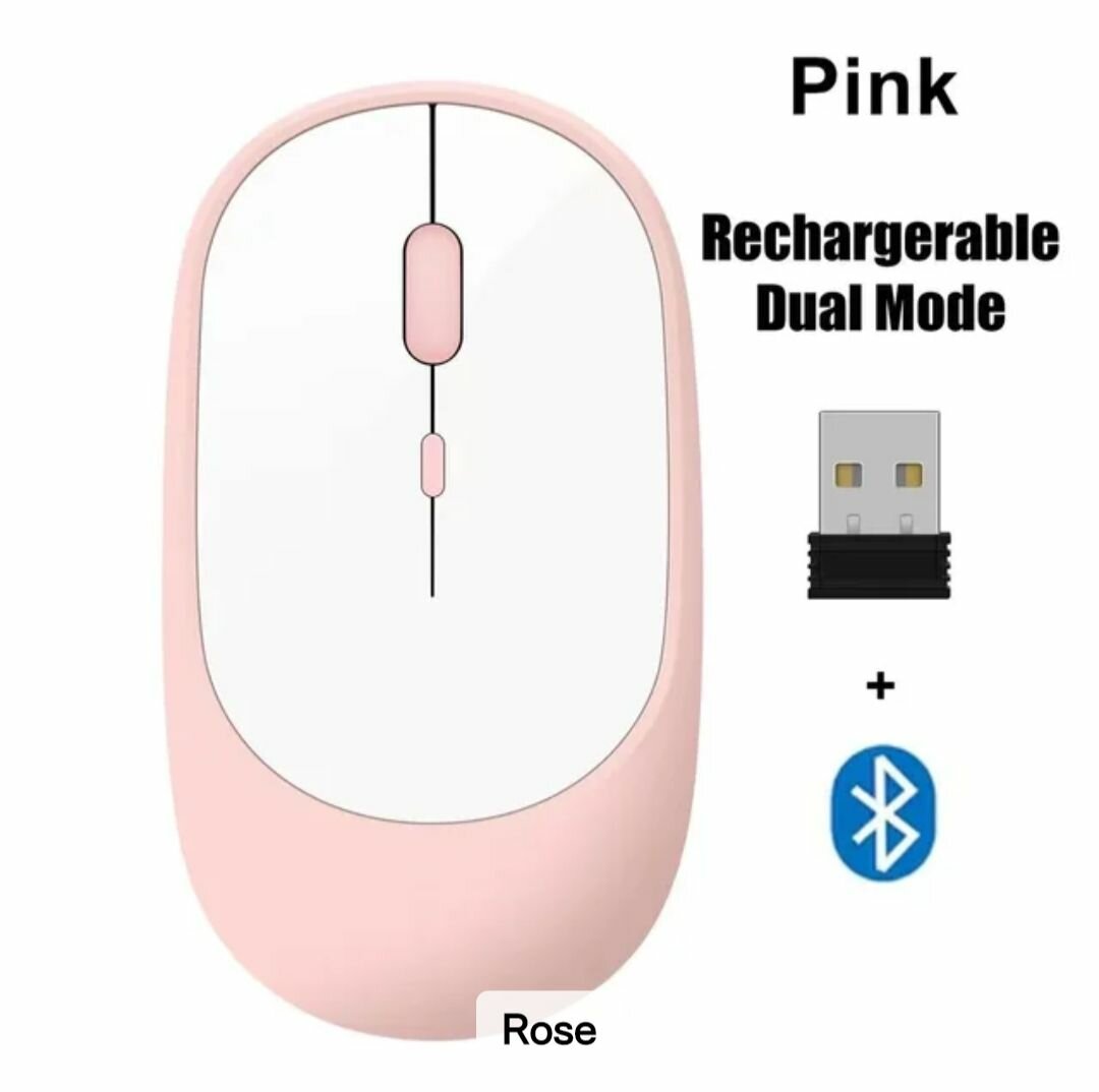 Souris sans fil en rose, idéale pour le travail et les loisirs. Avec double mode, USB et Bluetooth, elle offre une flexibilité optimale. Chargez-la facilement et profitez d'une utilisation continue. Son design élégant et moderne convient parfaitement à tout bureau.