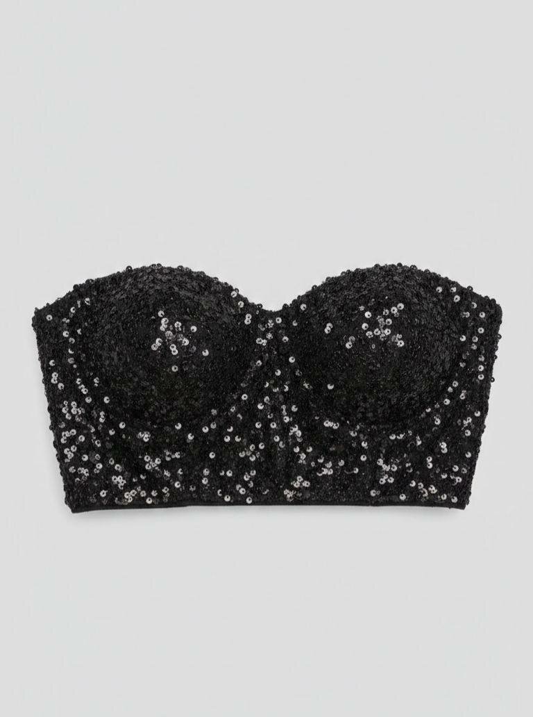 Ajoutez une touche de glamour à votre lingerie avec ce soutien-gorge noir orné de paillettes. Conçu pour les femmes qui aiment se sentir séduisantes et élégantes, ce modèle est parfait pour les occasions spéciales ou pour illuminer votre quotidien.