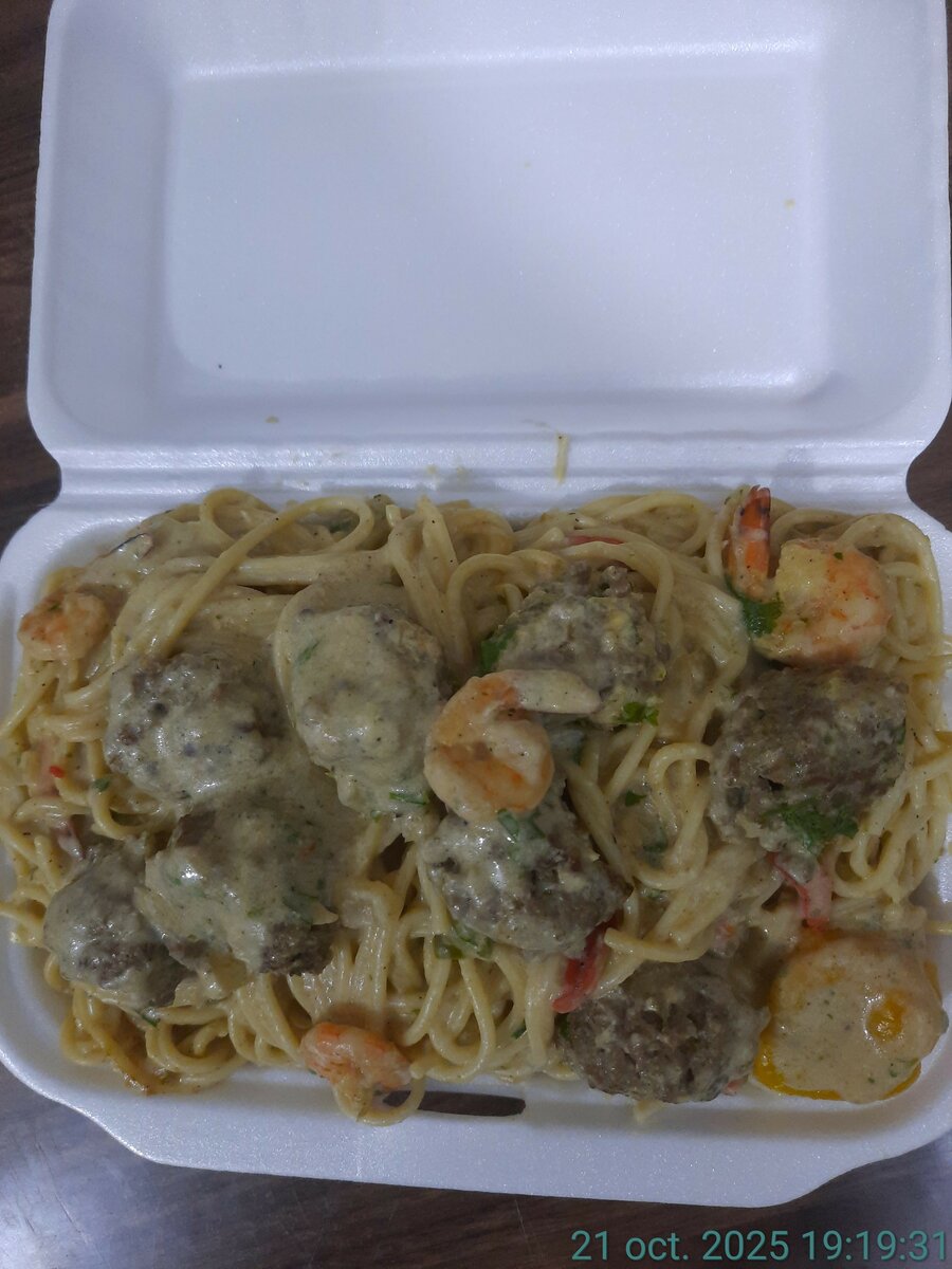 Découvrez notre irrésistible spaghetti accompagné de boulettes savoureuses et de crevettes juteuses à la creme fraiche. Parfait pour un déjeuner rapide ou un dîner délicieux. Il réunit le meilleur de la mer et de la cuisine italienne avec une sauce crémeuse qui ravira vos papilles. Idéal pour les amateurs de pâtes cherchant une expérience culinaire unique.