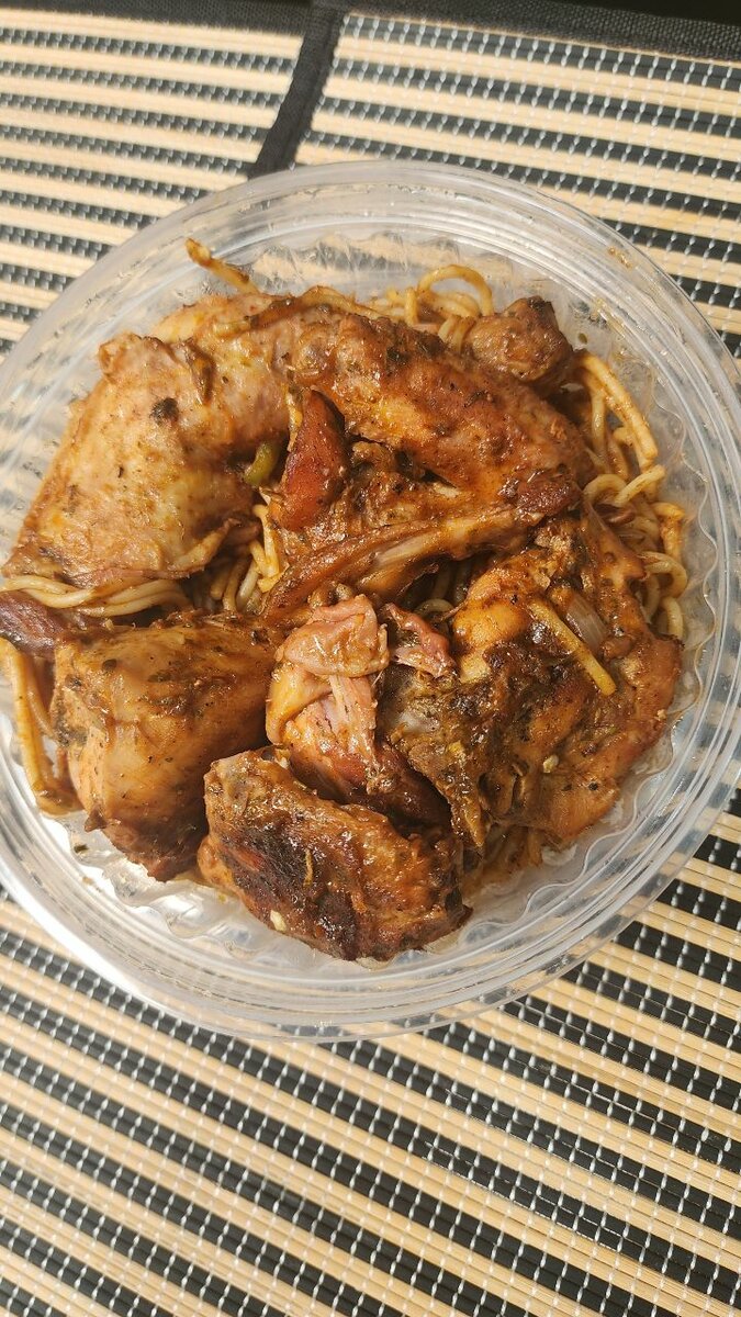 Dégustez ce succulent poulet grillé accompagné de spaghetti. Parfait pour un repas rapide et délicieux à la maison, ce plat est délicatement assaisonné pour exhaler toutes les saveurs. Idéal pour les amateurs de cuisine pratique et gourmande.