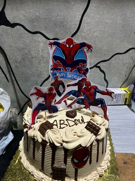 This stunning Spider-Man themed birthday cake is a delight for superhero fans. Featuring intricate designs with Spider-Man motifs, this cake is perfect for kids' parties and special celebrations. Crafted with attention to detail, it combines vibrant colors and decorative elements to create a memorable centerpiece.