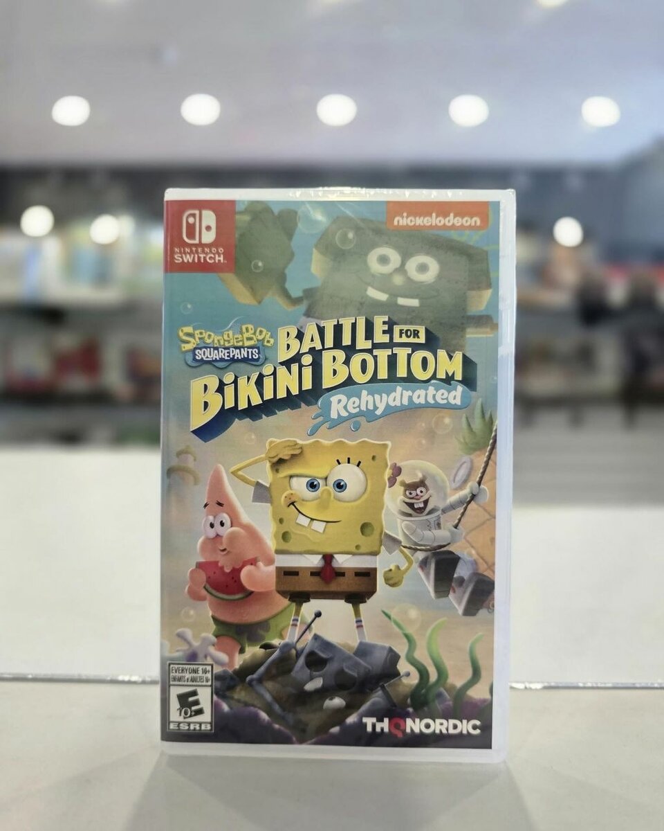 Découvrez SpongeBob Battle for Bikini Bottom Reheated sur Nintendo Switch. Un jeu d'aventure et d'action amusant basé sur le dessin animé populaire. Parfait pour les fans de SpongeBob. Disquette switch