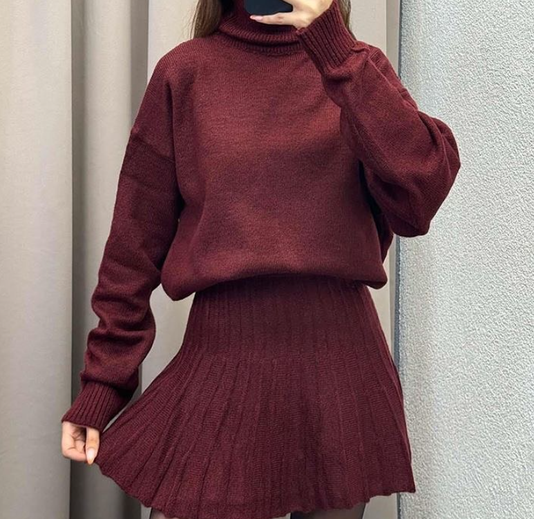 Комплект свитер с глухим воротником+юбка, бордовый