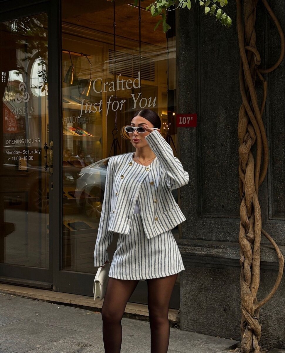Нежная двойка, состоящая из юбки плиссе и пиджака