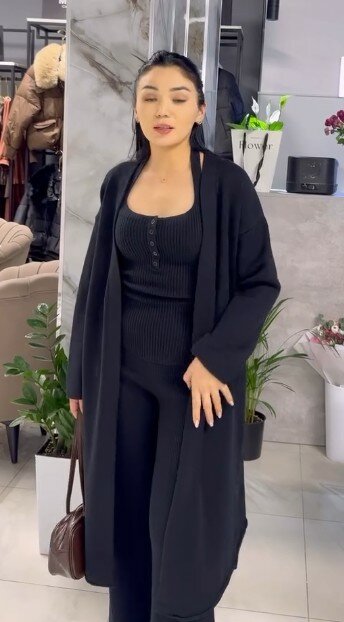 Костюм тройка, черный трикотаж