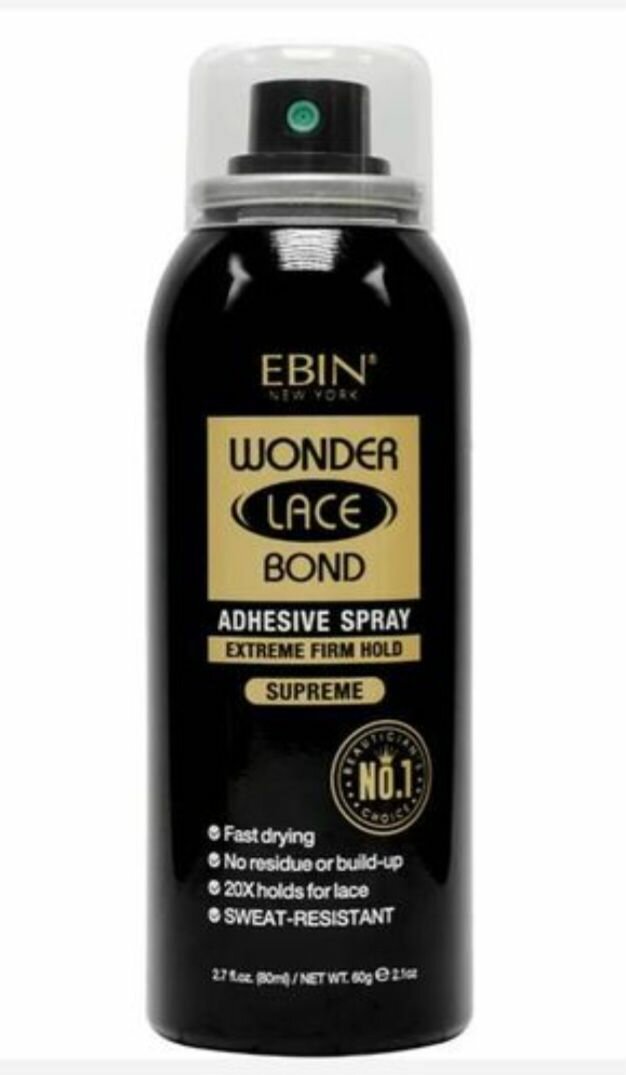 Spray adhésif Ebin Wonder Lace : fixation extrême pour dentelle, résistant à la transpiration. Formule sans parabène, séchage rapide et parfum agréable. Idéal pour une tenue longue durée et confortable.