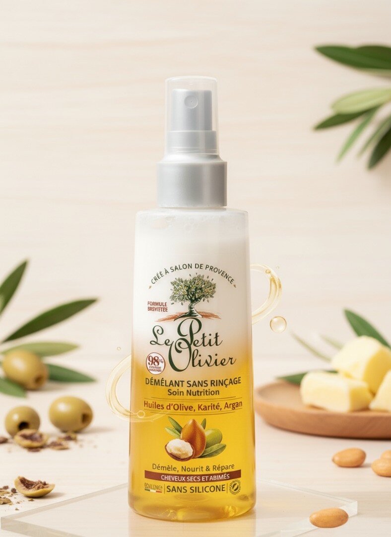 Découvrez le spray démêlant Le Petit Olivier enrichi en huiles d'olive, karité et argan. Parfait pour nourrir et protéger vos cheveux sans les alourdir. Sa formule sans silicone facilite le coiffage et sublime votre chevelure. Idéal pour un usage quotidien, obtenez des cheveux doux et brillants dès la première utilisation !