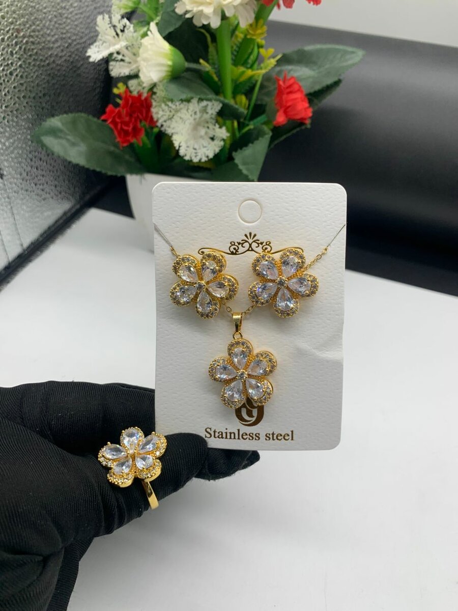 Elegant stainless steel jewelry sets featuring intricate designs and sparkling accents. Ideal for special occasions, the sets include matching necklaces and earrings. Durable and resistant to tarnishing, they add a touch of sophistication to any outfit. Perfect gift choice for loved ones.