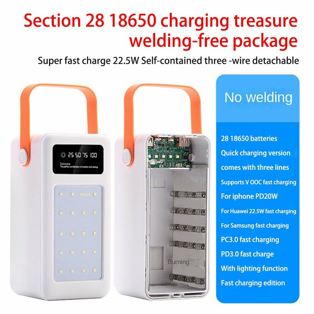 Optimisez votre énergie avec notre station d'alimentation portable. Capable de contenir 28 batteries 18650, cette unité offre une charge rapide jusqu'à 22,5W. Parfait pour les iPhone, Huawei, Samsung avec fonction de lampe intégrée. Idéal pour les voyages ou les situations d'urgence.