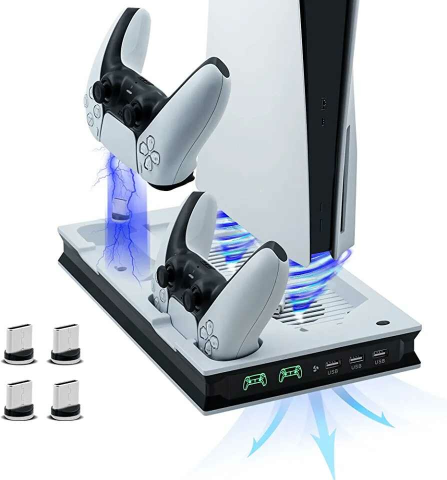 Améliorez votre expérience de jeu avec notre station de refroidissement pour manette PS5 équipée de ports USB et fonction de recharge rapide.