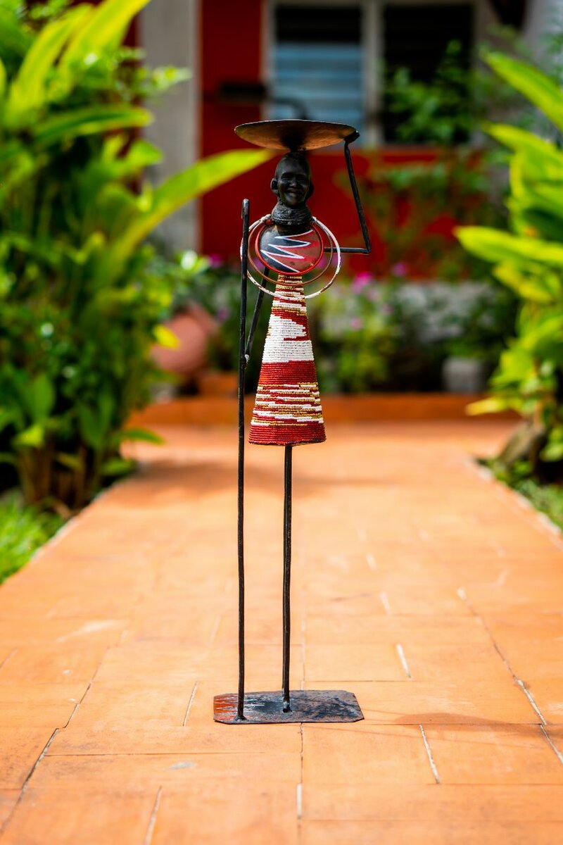 Ajoutez une touche d'élégance et de culture à votre intérieur avec cette statue décorative africaine. Fabriquée avec soin, elle est parfaite pour embellir une entrée ou un salon. Son design raffiné et ses couleurs vives apportent une atmosphère chaleureuse et élégante. Un choix idéal pour les amateurs d'art ethnique et de décoration originale.