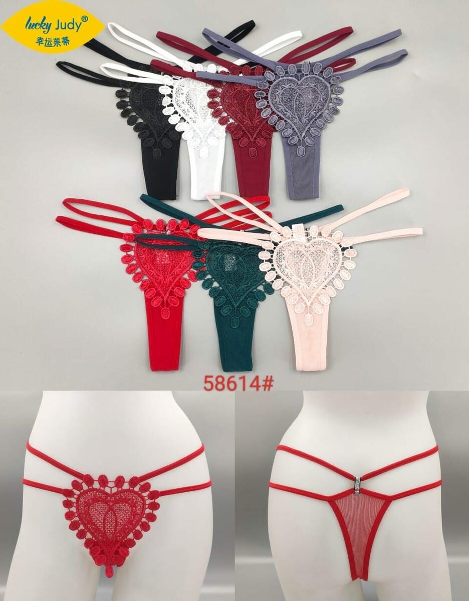 Découvrez ces strings en dentelle élégante pour femme, parfaits pour ajouter une touche de glamour à votre collection de lingerie. Disponibles en plusieurs couleurs, ces strings ornés de détails en cœur sont idéaux pour toutes les occasions spéciales. Fabriqués à partir de matériaux de haute qualité, ils garantissent confort et séduction. Offrez-vous le luxe et la finesse avec ces sous-vêtements incontournables.