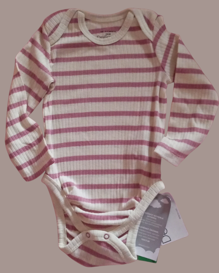 Adorable striped baby bodysuit made from soft, breathable fabric. Perfect for everyday wear, with long sleeves for warmth. Easy diaper changes with snap closures. Ideal for your little one's comfort.