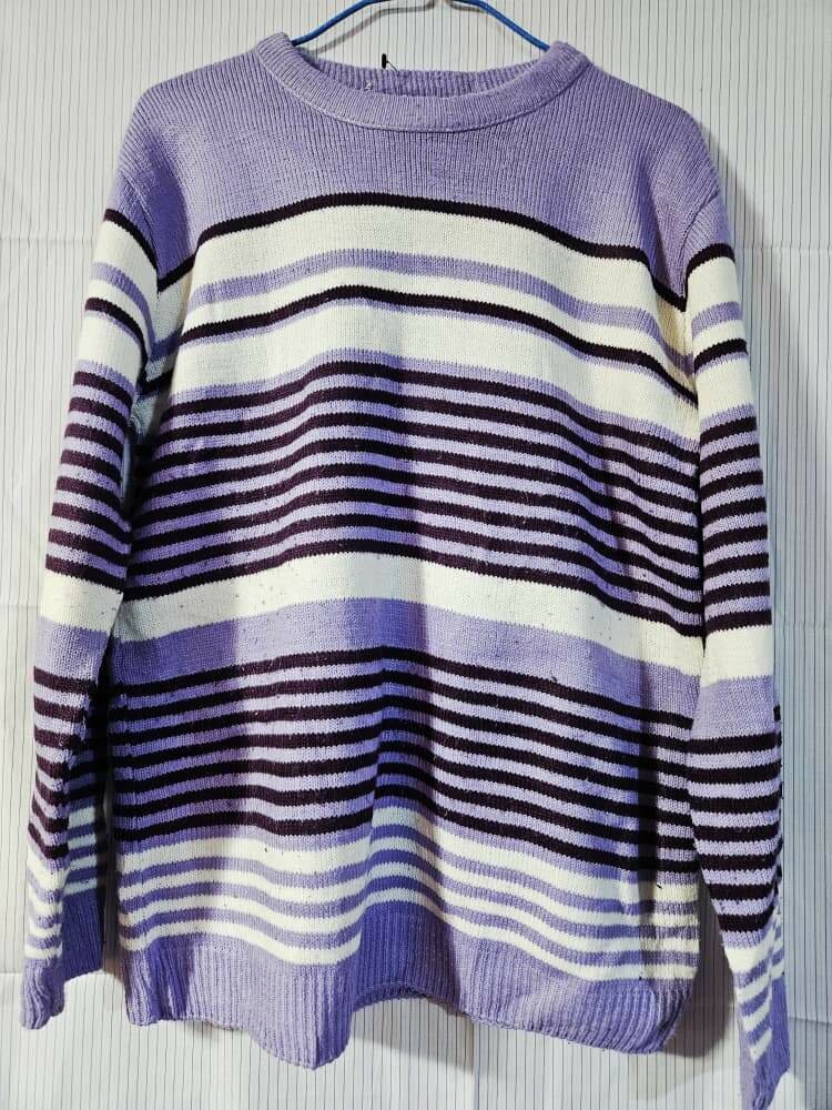 Cozy and stylish, this striped knit sweater offers a perfect blend of comfort and fashion. Ideal for casual wear, it's great for layering or wearing alone. Made from soft, durable fabric with a relaxed fit—perfect for chilly days.