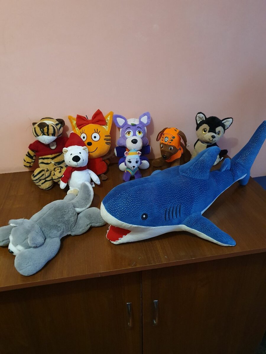 ПРОДАЮТСЯ Мягкие игрушки, разные. Есть персонажи из мультфильмов. Акула самая большая. Так же к мягким игрушкам идут зимние наушники, тоже НОВЫЕ! ЗА ВСЁ 1000 или можно раздельно, то что понравится!