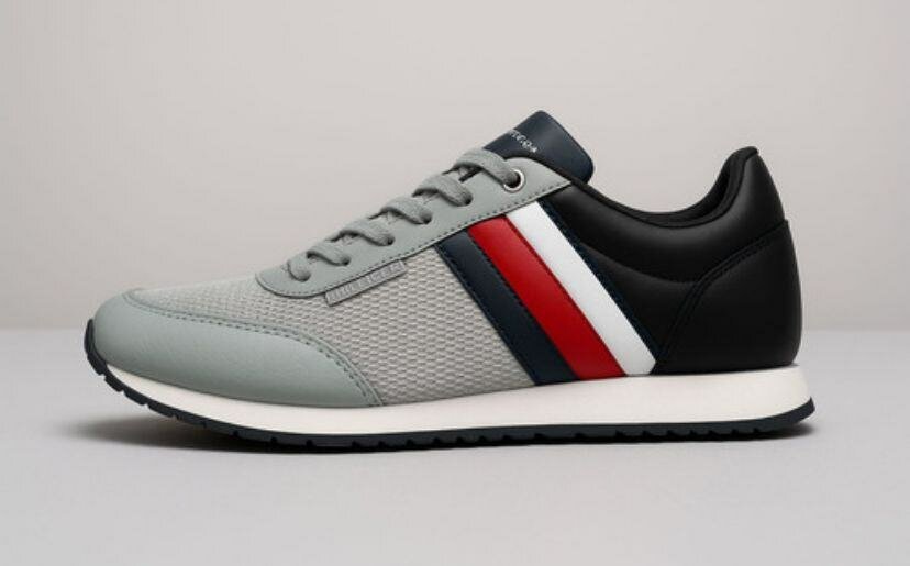 Upgrade your wardrobe with these stylish gray athletic sneakers. Perfect for casual outings or active wear, these sneakers offer comfort and a sleek design with red and white accents. Ideal for everyday use, providing excellent support and style.