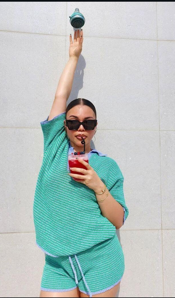 Elevate your casual look with this chic knit women's set. Perfect for lounging or a day out, it features a comfortable top and matching shorts in a cool, breathable fabric. The relaxed fit offers style and comfort for any occasion, making this set ideal for summer adventures or relaxing at home.